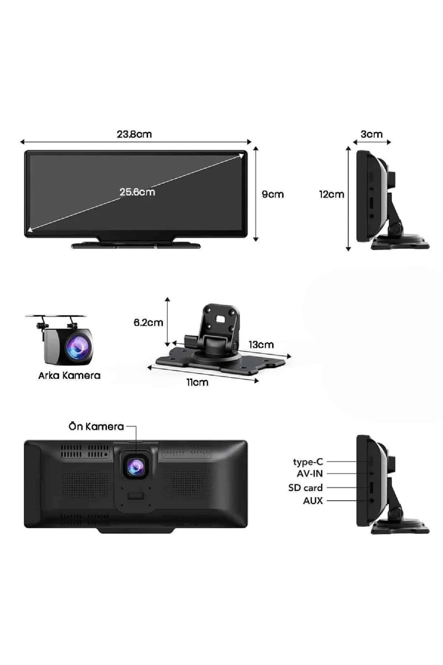10.26 inçlik geniş ve yüksek çözünürlüklü 4K hassas dokunmatik ekranıyla sürüş keyfini yeni bir boyuta taşıyan bu kablosuz CarPlay ekran, hem konforu hem de güvenliği bir araya getiriyor. iOS ve Android cihazlarla uyumlu olan bu sistem, karmaşık kablo tesisatına ya da araç orijinalliğini bozacak işlemlere gerek kalmadan doğrudan entegre edilebilir. Sadece 12V çakmaklık soketine takılarak saniyeler içinde kullanıma hazır hale gelir; ekstra profesyonel destek gerekmeden herkesin rahatlıkla kurabileceği bir yapıya sahiptir.Cihazla birlikte gelen ön ve arka kameralar sayesinde yalnızca bir multimedya ekranı değil, aynı zamanda kapsamlı bir güvenlik çözümü de sunar. Araç içi ve dışı görüntüleri kaydeden bu sistem, olası kaza durumlarında güvenliğinizi belgelemek için büyük avantaj sağlar. Döngüsel kayıt teknolojisi sayesinde hafıza kartı dolduğunda en eski kayıtlar otomatik olarak silinir ve yeni görüntüler için yer açılır — bu da kullanıcıya zaman kazandıran pratik bir detaydır.Kablosuz CarPlay ve Android Auto desteği sayesinde haritalar, müzik uygulamaları, telefon aramaları gibi işlevlere kolayca erişebilir; aynı zamanda ekran yansıtma özelliği ile telefonunuzdaki videoları doğrudan ekranda izleyebilirsiniz. Cihaz, FM verici veya Aux çıkışı ile araç hoparlör sisteminize kolayca bağlanabilir, böylece ses kalitesinden ödün vermeden içeriklerinizin keyfini çıkarabilirsiniz.Modern araç kullanıcılarının beklentilerine yanıt veren bu CarPlay ekran, hem teknolojik hem de kullanıcı dostu yapısıyla öne çıkar. Sürüş sırasında dikkat dağıtmadan daha bilinçli kararlar almanızı sağlar, seyahatlerinizi eğlenceli ve güvenli hale getirir.